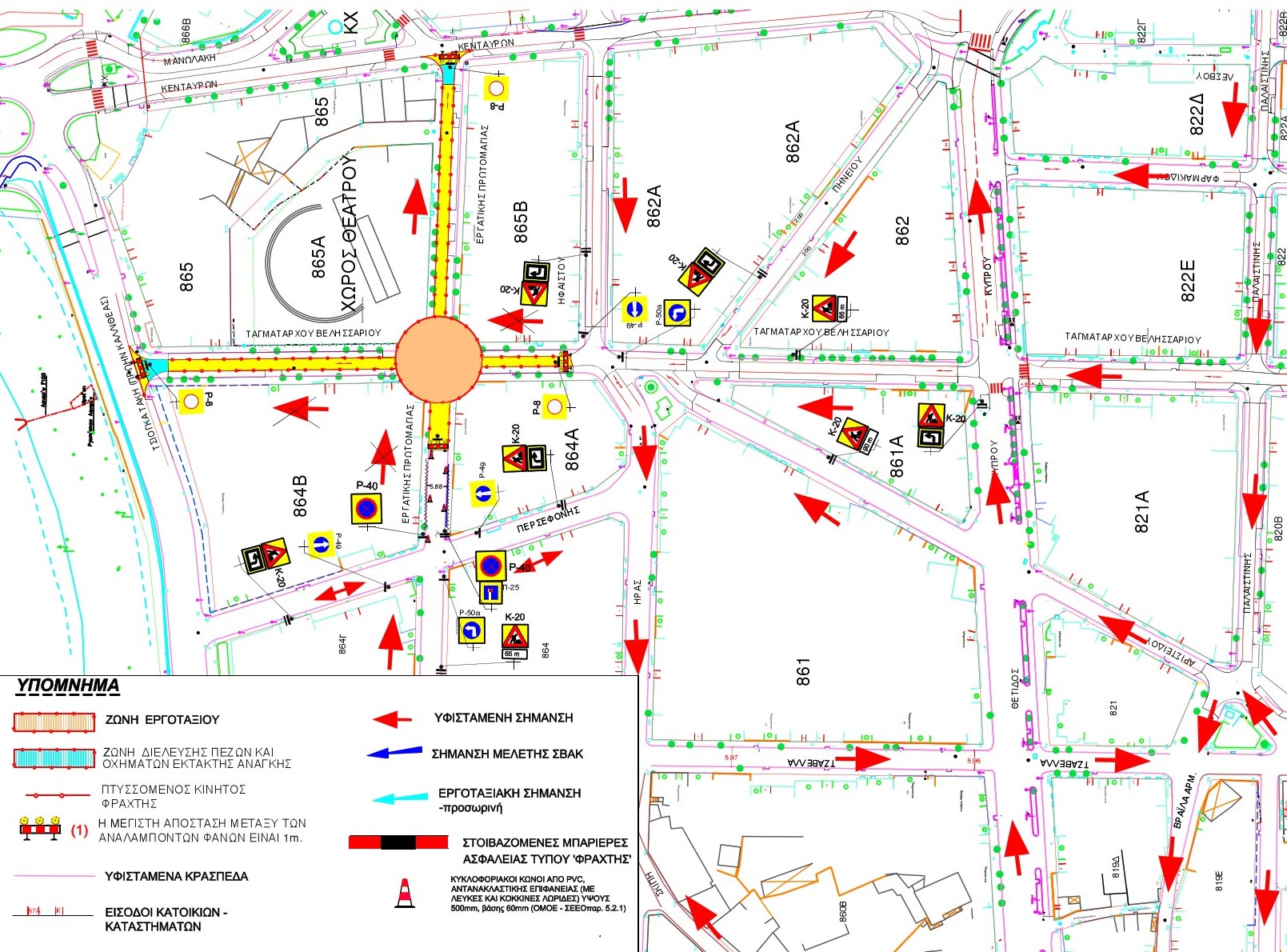 Για τους λόγους αυτούς θα εφαρμοστούν προσωρινές κυκλοφοριακές ρυθμίσεις με ολικό αποκλεισμό της κυκλοφορίας και της στάθμευσης των οχημάτων στην οδό Ταγματάρχου Βελησσαρίου (από την οδό Ηφαίστου έως την οδό Τάκη Τσιόγκα), από την Πέμπτη 10 Ιουλίου ως και την Τρίτη 7 Οκτωβρίου 2025, καθ’ όλο το 24ωρο, σύμφωνα με το ΦΕΚ 2474/Β/26-4-2024 που αφορά τις προσωρινές κυκλοφοριακές ρυθμίσεις (εργοταξιακού χαρακτήρα) για το παραπάνω έργο.