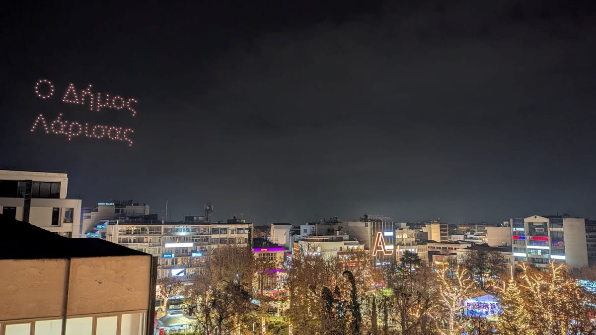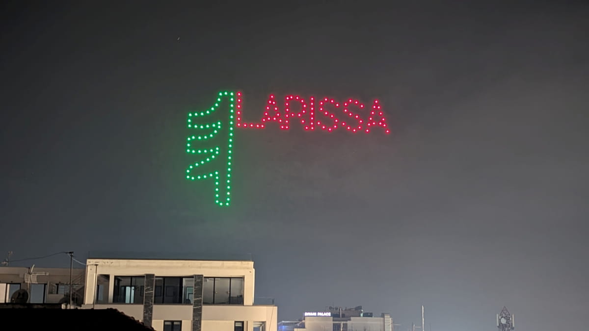 Λάμψη, φως και χριστουγεννιάτικες μελωδίες στην καρδιά της Λάρισας - Μαγευτικό drone show στον νυχτερινό ουρανό της πόλης