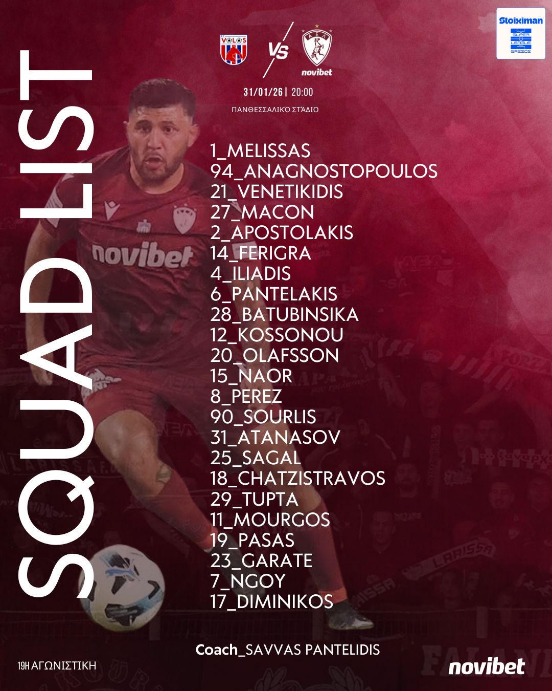 Η αποστολή της ΑΕΛ στο αυριανό παιχνίδι με το Βόλο