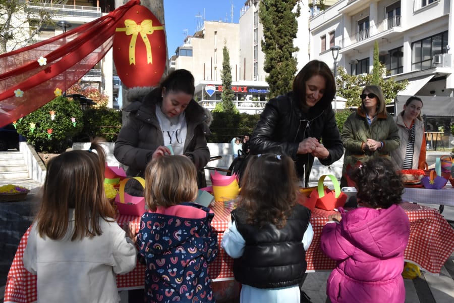Με πολύχρωμες λαμπάδες, χειροτεχνίες, χάρτινα καλαθάκια και πασχαλινές κάρτες, δια χειρός μικρών δημιουργών γέμισε η πλατεία Ταχυδρομείου, στο πλαίσιο της εκδήλωσης που διοργάνωσε η Αντιδημαρχία Παιδείας και το Τμήμα Παιδικών Σταθμών του Δήμου Λαρισαίων.