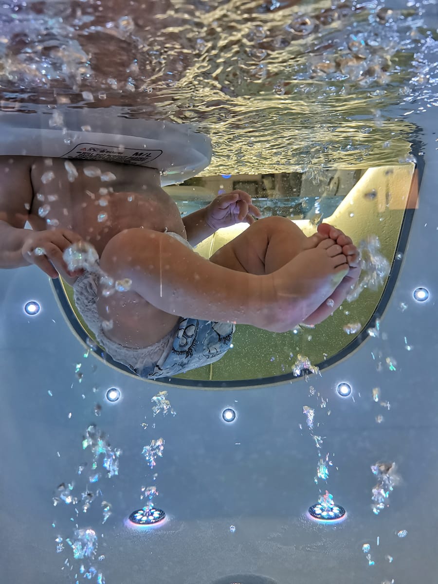 Τα μωράκια από 40 ημερών μέχρι και 3 ετών μπαίνουν σε ειδικά διαμορφωμένη πισίνα φορώντας ασφαλή σωσίβια - πλωτήρες και ο γονιός βρίσκεται πάντα δίπλα. Η διαδικασία διαρκεί 30 λεπτά.
