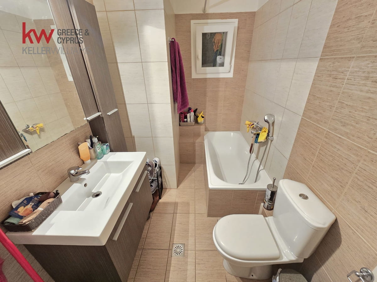 Αποτελείται από 1 ευρύχωρο υπνοδωμάτιο, φωτεινό σαλόνι, κουζίνα η οποία διαχωρίζεται με πρακτικό πάγκο και ένα μεγάλο μπάνιο. Το διαμέρισμα διαθέτει μπαλκόνι με θέα στην αυλή της οικοδομής, στο οποίο υπάρχει και εξωτερική πρόσβαση μέσω σκάλας. Η θέρμανση γίνεται με αυτόνομο λεβητάκι φυσικού αερίου, προσφέροντας οικονομία και άνεση καθ’ όλη τη διάρκεια του χειμώνα.