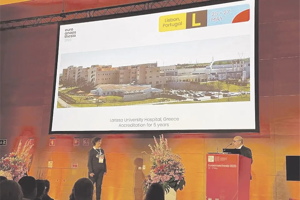 Το βραβείο παρέλαβε η Διευθύντρια της Αναισθησιολογικής Κλινικής του Π.Γ.Ν. Λάρισας, Καθηγήτρια Αναισθησιολογίας Τμήμα Ιατρικής, Σχολή Επιστημών Υγείας Πανεπιστημίου Θεσσαλίας, κ. Ελένη Αρναούτογλου, από τον Ολλανδό Καθηγητή Αναισθησιολογίας Markus Klimek, μέλος του Διοικητικού Συμβουλίου της Ευρωπαϊκής Εταιρείας, σε ειδική τελετή που έλαβε χώρα τη Δευτέρα 26 Μαΐου 2025 στο συνεδριακό κέντρο της Λισαβόνας.