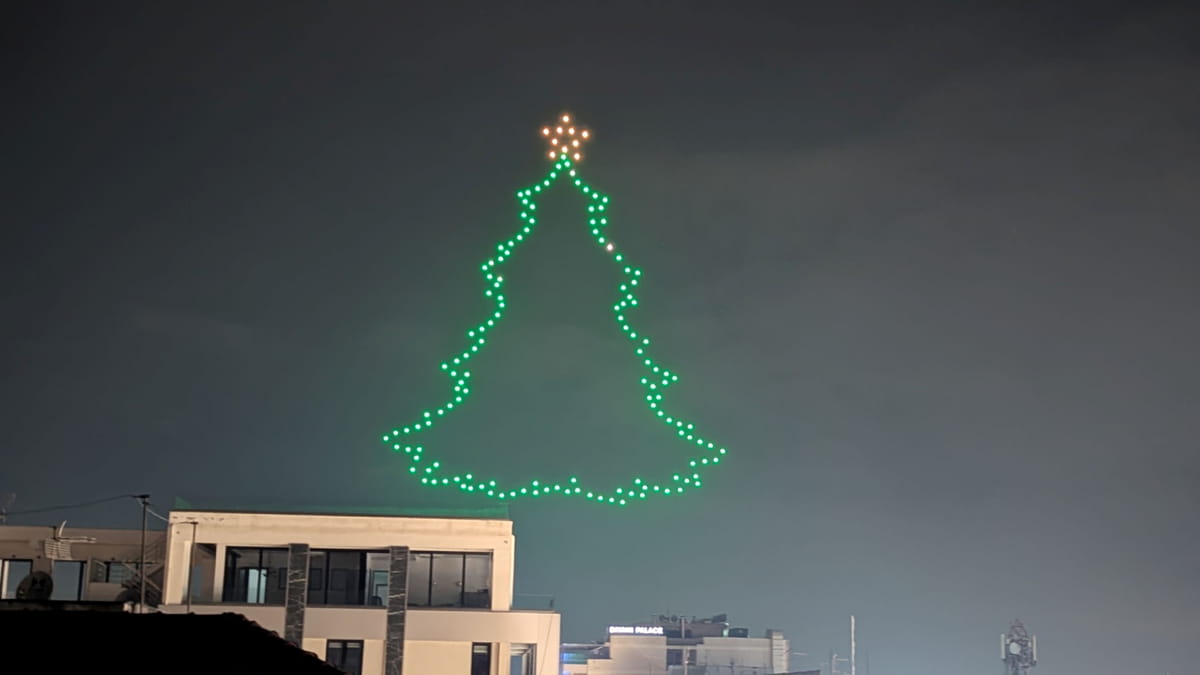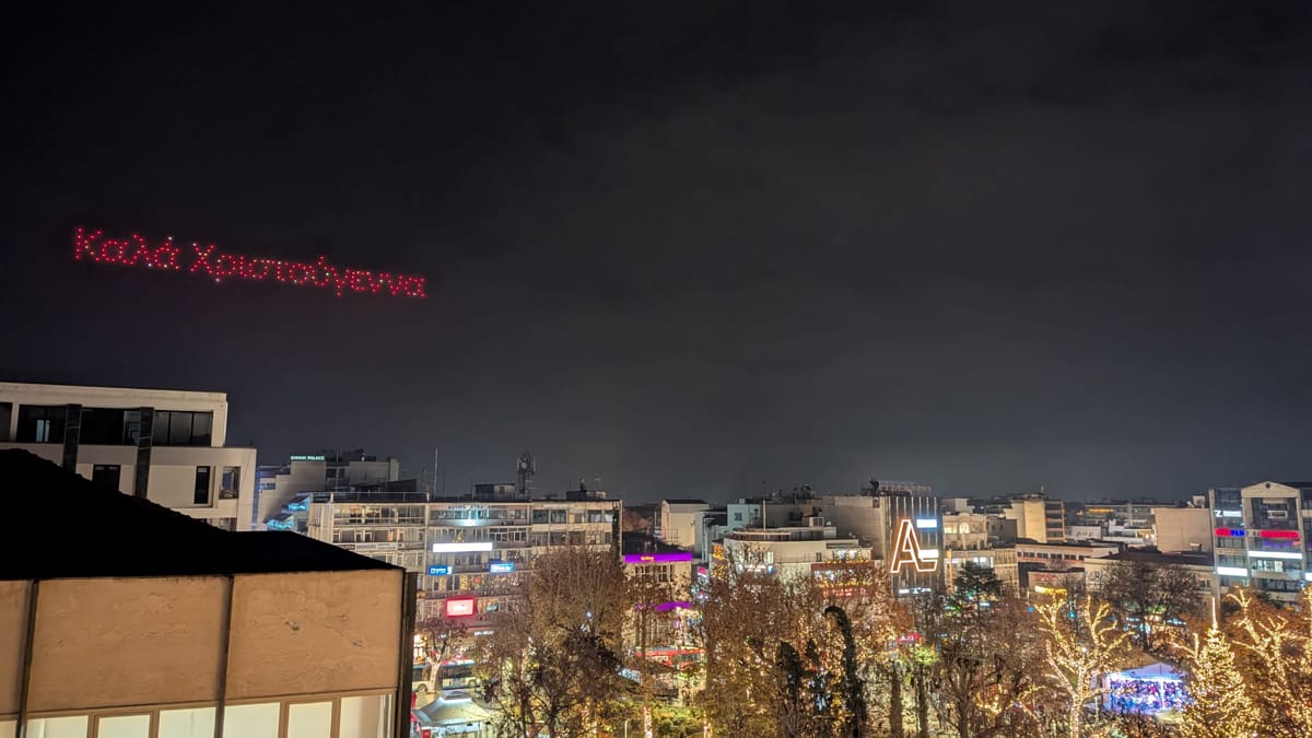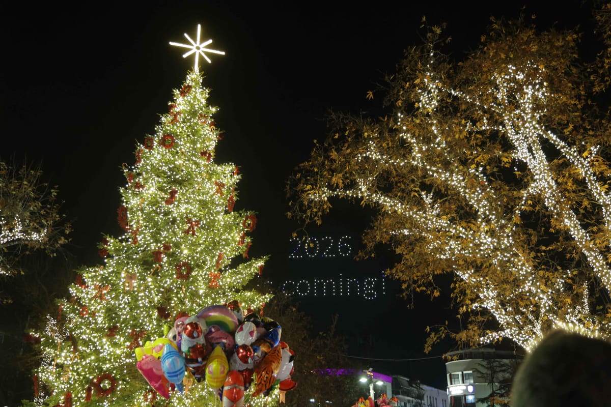 Λάμψη, φως και χριστουγεννιάτικες μελωδίες στην καρδιά της Λάρισας - Μαγευτικό drone show στον νυχτερινό ουρανό της πόλης