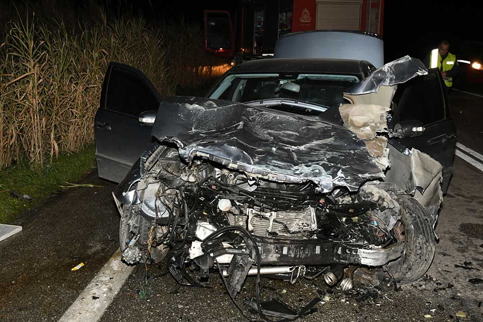 Οι επιβαίνοντες στο δεύτερο όχημα μεταφέρθηκαν στο νοσοκομείο για προληπτικούς λόγους, αφού, αν και το αυτοκίνητο (φωτ.) έχει σοβαρότατες υλικές ζημιές, αυτοί δεν τραυματίστηκαν.